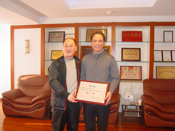 北京萬科領導親赴北京公司授牌 時間:2010-12-14 5440 北京公司在萬科地產第三季度萬科北京區域在建項目產品質量評估中,萬科藍山項目經專家現場實測實量,390個點合格率為99.39%,觀感質量評分、質量風險評估綜合得分97.35%,項目綜合排名蟬聯第一。12月12日上午,北京萬科副總經理孔祥明率工程部經理、項目總經理等一行,特地趕到我公司,把第一名的獎牌隆重授予我公司陳榮春總經理。陳總對萬科的肯定和信任表示感謝,并期望雙方進一步加強友好合作,永續真誠友誼。