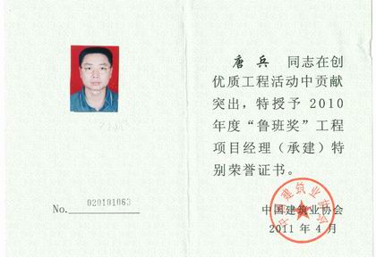 唐兵 時間:2012-04-10 7776 唐兵,現任深圳公司七處二工區副主任。先后擔任過5個重點大型超高層項目的技術負責人或項目經理,參與的施工工法、項目管理成果、實用新型專利等獲國家表彰,曾獲“江蘇省建筑業質量管理先進個人”稱號,被授予“創魯班獎工程項目經理特別榮譽證書”。