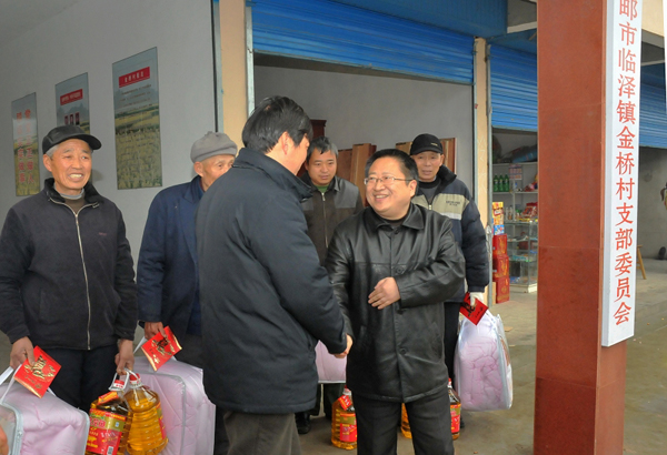公司領導節前扶貧慰問 時間:2010-02-10 5286 2月10日,公司副總經理程杰一行冒雨赴公司對口扶貧的高郵臨澤鎮金橋村進行走訪慰問。程總參觀了由我公司支持建成的金橋村村民服務中心,了解去年該村的基本情況和今年的發展打算,程總希望金橋村今后要在扶持特色產業上作文章,努力形成自力更生,自我造血的能力。隨后,程總看望了當地低收入貧困農戶,給他們送去節日的問候和慰問品。 金橋村地處里下河地區腹地,位于高郵、寶應、興化三縣交界處。從2008年公司定點扶貧該村以來,公司著力幫扶改善交通環境,發展高效農業,取得一定成績,受到市扶貧辦的肯定。