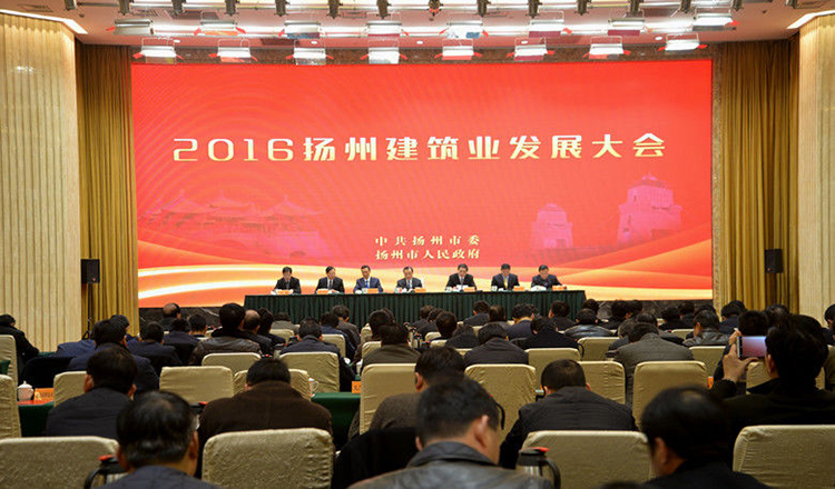 正月初七上班第一天,2016揚州建筑業發展大會在揚州會議中心召開,揚州市四套班子領導、政府有關部門和全市建筑業骨干企業負責人參加,陸金龍、宗有農、吳士茂等公司領導代表建工控股和江蘇華建參加會議。