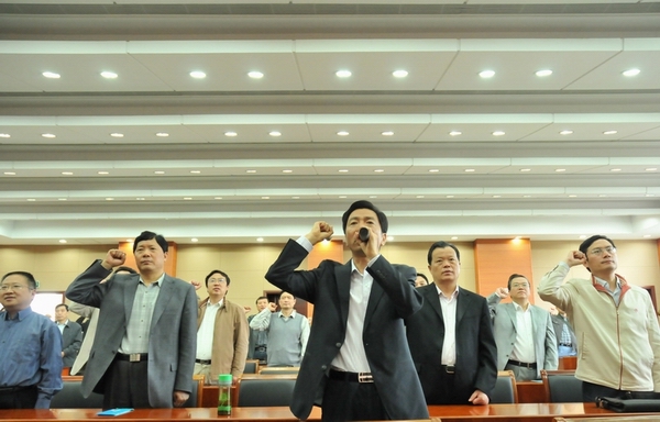 揚州建工控股系統組織黨員干部到揚州市警示教育基地參觀接受教育 時間:2011-05-27 4822 5月27日上午,建工控股公司機關、華建總部黨員干部和揚建、揚安、華宏、中專校等單位領導班子成員及黨務、紀檢、財務、行政等部門中層負責人共80多人,到揚州市警示教育基地參觀接受教育,大家觀看了預防腐敗警示教育宣傳圖片、電視專題片和違法犯罪人員現身說法錄像。建控公司黨委書記、董事長陸金龍在參觀結束前作了誡勉講話,指出這次建控系統組織黨員干部開展廉潔自律警示教育活動,是加強干部能力作風建設的一項重要內容。一系列反面案例帶來的教訓和思考,令大家深受觸動。見不賢而內自省。建控系統廣大黨員干部要從確立正確的角色定位、樹立合理的人生追求、建立完善的制度保障、打造健康的從業環境四個方面入手,進一步加強廉政教育、樹立自律意識、保持清廉本色,從而提高干事業、謀發展的能力和水平,為創建“三個揚州”、建設和諧社會作出應有貢獻。最后,陸金龍同志帶領大家集體進行了莊嚴的廉政承諾宣誓。