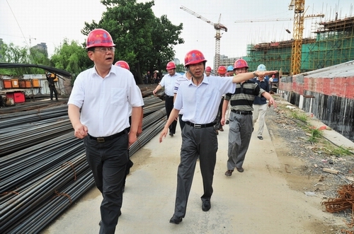 陳揚副市長視察建設大廈工地 時間:2011-08-12 4774 8月12日下午,揚州市政府副市長陳揚、市建設局局長楊正福一行前往江蘇華建代建的揚州建設大廈暨規劃展覽館、市民中心項目工地現場視察。揚州建工控股公司、江蘇華建董事長陸金龍陪同視察,并將工程施工進展情況向陳副市長作了簡要匯報。陳副市長對建設大廈總體施工進展表示滿意,并提出希望所有參建單位精心組織,科學管理,確保這一政府重點工程建設順利推進。公司領導程杰等一起陪同視察。