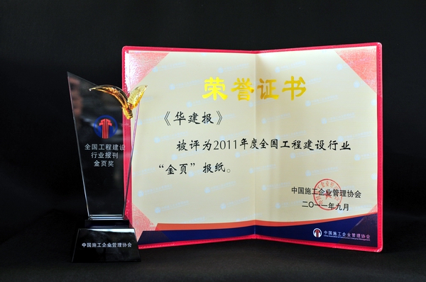 日前,在中施企協召開的2011年度通聯工作會議上,經過專家評委仔細嚴格的評審,全國工程建設行業優秀報刊結果揭曉,公司主辦的《華建報》再次被評為全國工程建設行業 “金頁”報紙。《華建報》創刊四年來,積極發揮窗口作用、平臺作用,以傳遞經營開拓新信息、報道公司發展新成就、總結企業管理新經驗和反映公司文化建設新成果為主要內容,在宣傳企業形象、凝聚員工精神、塑造企業文化以及促進行業交流等方面起到了積極顯著作用,受到社會各界好評。四年來已累計獲得全國建設行業報刊“優秀獎”兩次,并獲全國工程建設行業報刊“金頁獎”兩次。