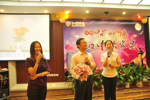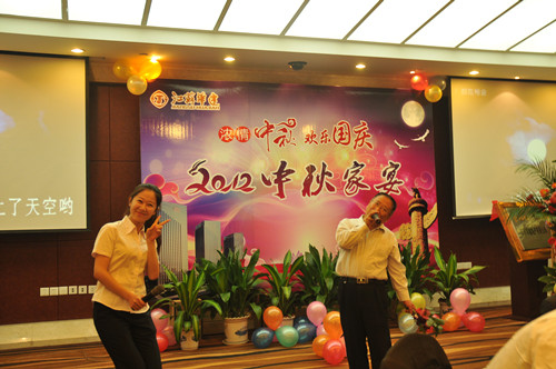 公司舉辦2012中秋家宴 時間:2012-10-06 4220 9月29日,公司在揚州西園大酒店隆重舉辦“濃情中秋,歡樂國慶——2012中秋家宴”,公司總部機關、在揚分支機構和駐外分公司回揚休假的經營層人員約百人共聚一堂,喜迎中秋、國慶佳節的來臨。家宴上,無論是領導還是普通員工,大家縱情高歌,歡樂表演,充分展現了華建大家庭其樂融融的喜慶氣氛,同時展示了華建人昂揚向上的精神風貌。