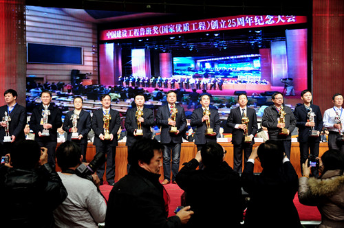 12月21日下午,中國建設工程“魯班獎”創(chuàng)立25周年紀念大會在北京會議中心召開,會議表彰了一批對創(chuàng)建魯班獎有突出貢獻的建筑企業(yè)。我公司以16項“魯班獎”的突出貢獻位列全國第五,喜獲“魯班獎突出貢獻獎金獎”,全國僅有17家建筑企業(yè)獲此殊榮,江蘇也僅有兩家企業(yè)上榜。公司總經理宗有農親自赴京領獎。
