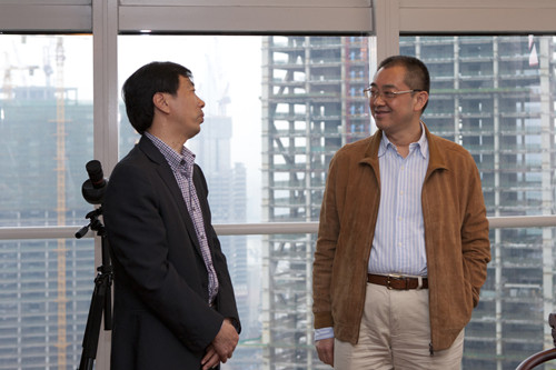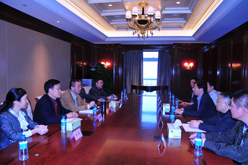 4月11日下午,陸金龍董事長專程赴廣州恒大中心拜訪恒大集團董事局副主席、總裁夏海鈞博士,公司副總經理兼總工程師程杰、副總經理王宏、繆國樞和總會計師李長棟隨同拜訪。恒大集團夏海鈞總裁和林漫俊、余偉橋副總裁等領導會見了陸董事長一行,雙方在熱情友好的氣氛中進行了會談。陸董事長首先感謝夏海鈞總裁去年在百忙之中參加華建成立三十周年慶祝大會,介紹了華建的發展近況和承建的恒大工程項目的有關情況,希望雙方進一步確立深入穩固的戰略合作伙伴關系,增加合作領域,拓展合作業務工程量,并邀請恒大集團赴揚州共同合作建設商業綜合體項目。
