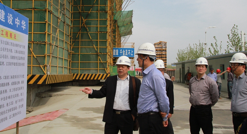聞道才副市長赴安徽分公司視察東方藍海項目 時間:2014-04-11 3623 4月10日下午,揚州市副市長聞道才一行赴安徽分公司視察了合肥東方藍海B、C組團三標段項目。公司副總經理陸俊、副總經理、惠州公司總經理華恒榮陪同參加。 在項目現場華恒榮副總經理向來訪領導簡要介紹了江蘇華建在安徽市場的發展戰略及東方藍海B、C組團三標段項目的施工情況。聞市長對施工現場、施工組織非常滿意,并再三強調要抓好安全工作,爭創優質工程,為揚州建筑業在安徽市場的發展做出積極貢獻。