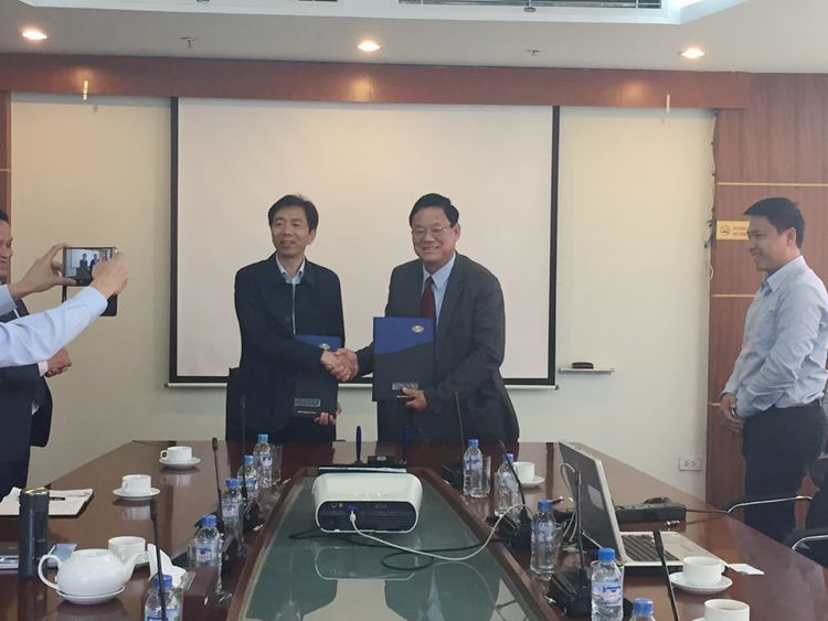 3月14日,江蘇華建和越南建筑及進出口公司框架合作協議簽訂儀式在越南首都河內舉行。江蘇華建董事長陸金龍、越南建筑及進出口公司殷董事長(LE DOANH YEN)簽署協議。華建聯盟成員單位華宇公司董事長孫金東、新加坡蘇揚公司總經理、老撾公司董事長封榮兵等參加儀式。
