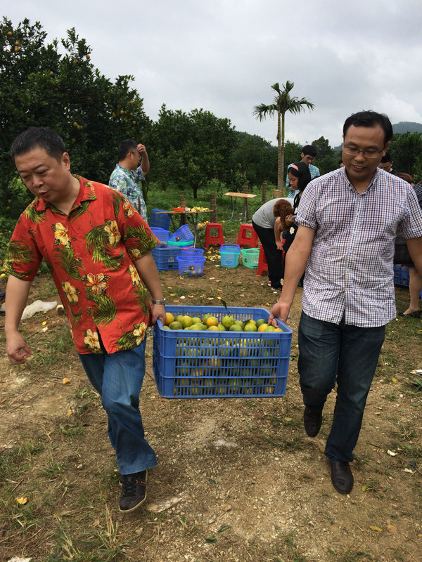 采摘,豐收的果實! 時間:2014-12-01 4459 南國椰風送秋意,海島瓊中結碩果。11月30日清晨,海南分公司組織綠橙采摘體驗活動,機關二十多名員工參加。一路細雨一路歌、一路顛簸一路笑,在瓊中鑫蘋果園里,一排排、一壟壟,漫山的果樹上結滿了綠橙,大家熱情高漲,興致盎然,親手體驗采摘的樂趣、勞動的快樂、收獲的喜悅和甘美。
