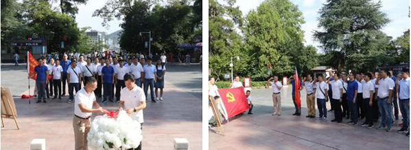 在鳳凰山烈士陵園,學員代表向烈士敬獻花籃并瞻仰鄧萍烈士墓,江蘇省駐瓊建工企業黨委委員高家馴帶領大家重溫入黨誓詞,全體學員右手抱拳高高舉起,莊嚴宣誓,堅定有力的宣誓聲響徹廣場。