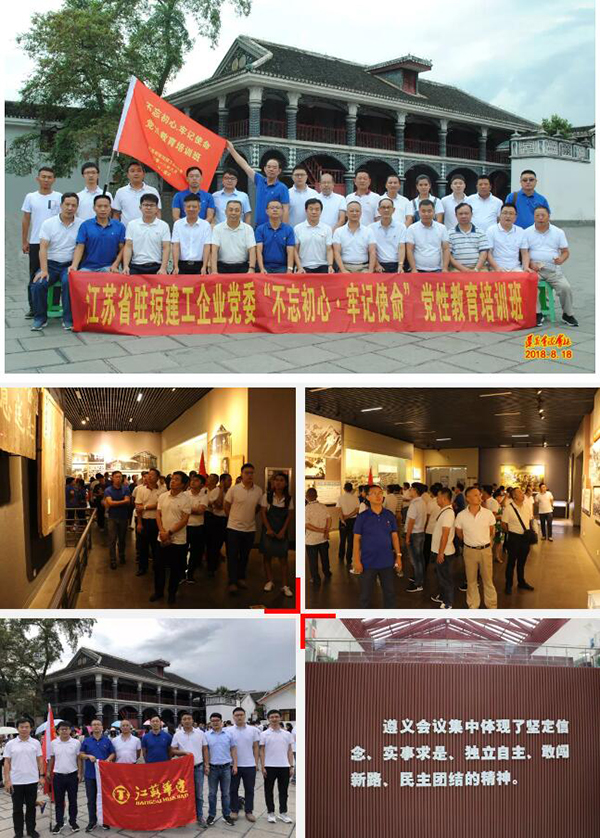 為深入學習貫徹黨的十九大會議精神,進一步加強黨員理想信念教育,弘揚傳承紅色革命精神。817日至20日,江蘇省駐瓊建工企業黨委、華建海南黨總支根據年度黨建工作計劃和部署,組織27名黨員干部赴貴開展以“不忘初心·牢記使命”為主題的第一批黨員培訓班,接受了一次深刻的紅色文化教育。