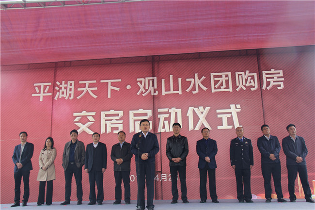 4月28日上午10時,由海南區域公司宜昌分公司總包承建的平湖天下·觀山水團購房交房啟動儀式在項目C區隆重舉行,夷陵區委書記王璽偉等區委區政府相關領導,宜昌分公司總經理唐生健出席儀式并參與團購房交鑰匙環節。