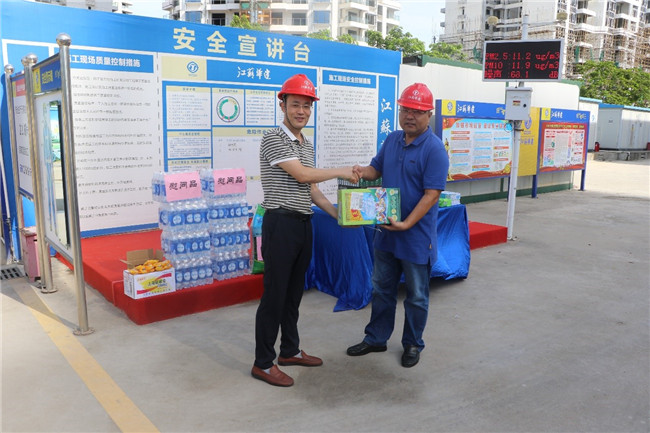 公司工會赴工地進行高溫慰問 時間:2019-06-11 2606 6月10日上午,海南分公司黨總支副書記、工會主席郁遠帶隊走訪慰問海口恒大·美麗沙項目部,檢查項目安全生產情況,并給奮戰在高溫、露天生產第一線的員工送去涼茶、綠豆、人丹等防暑用品,送去企業及工會組織的關懷。 在詳細詢問了工程推進情況和一線職工的工作、生活情況后,郁遠書記囑咐項目負責人要安排好施工現場人員的作息時間,做好降溫消暑保護措施。并叮囑一線的職工要注意人身與施工安全,合理安排工作時間,做到勞逸結合,確保高溫期的安全生產。(辦公室)