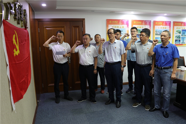 最后,全體黨員面對鮮紅黨旗舉行了莊嚴神圣的重溫入黨誓詞活動。