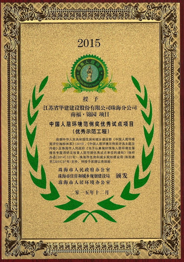 南福錦園榮獲中國人居環境范例獎優秀試點項目(優秀示范工程)