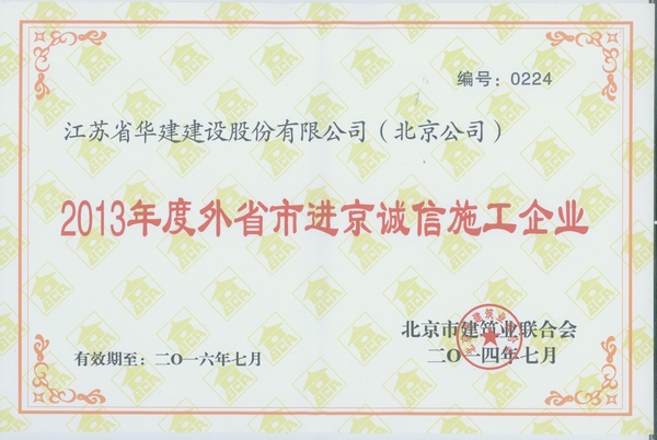 日前,江蘇華建北京公司被北京市建筑業(yè)聯合會授予“北京建設行業(yè)誠信企業(yè)”稱號。近年來,北京市...
