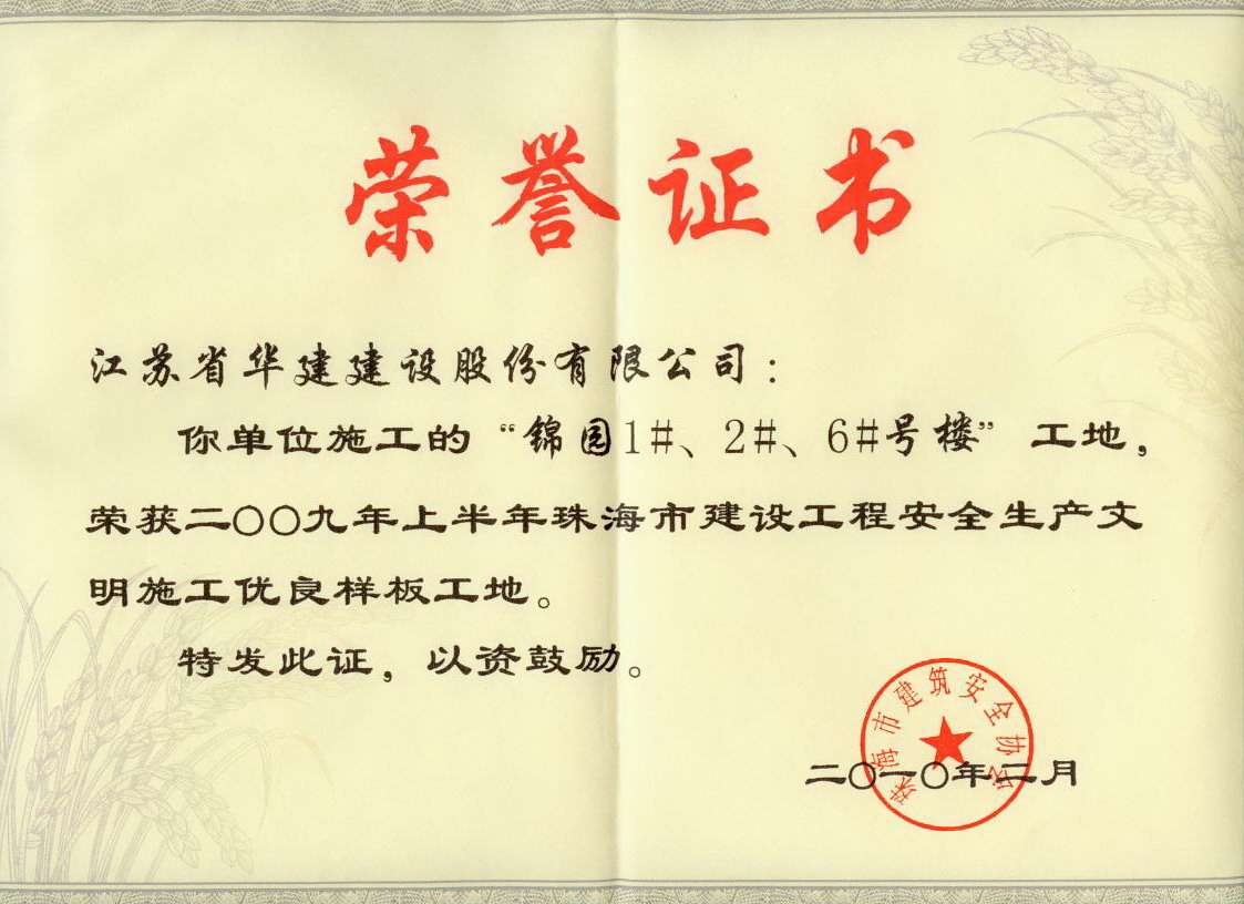 AAA級安全文明標準化工地,是由中國建筑業協會建筑安全與機械分會(原建筑安全分會)實施評選的獎項,是安全文明施工方面的最高獎項。 截止2020年末,江蘇華建共計10項工程入選此獎項。
