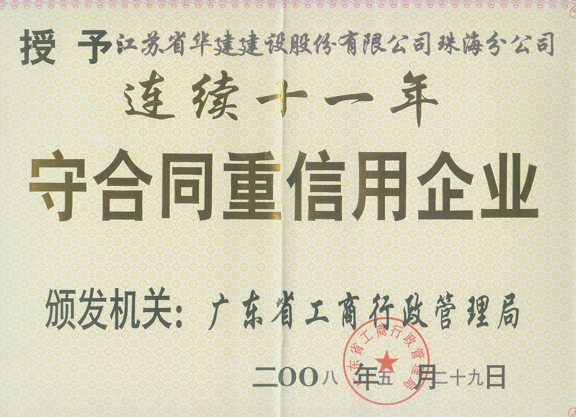 2008廣東省連續十一年守合同重信用企業