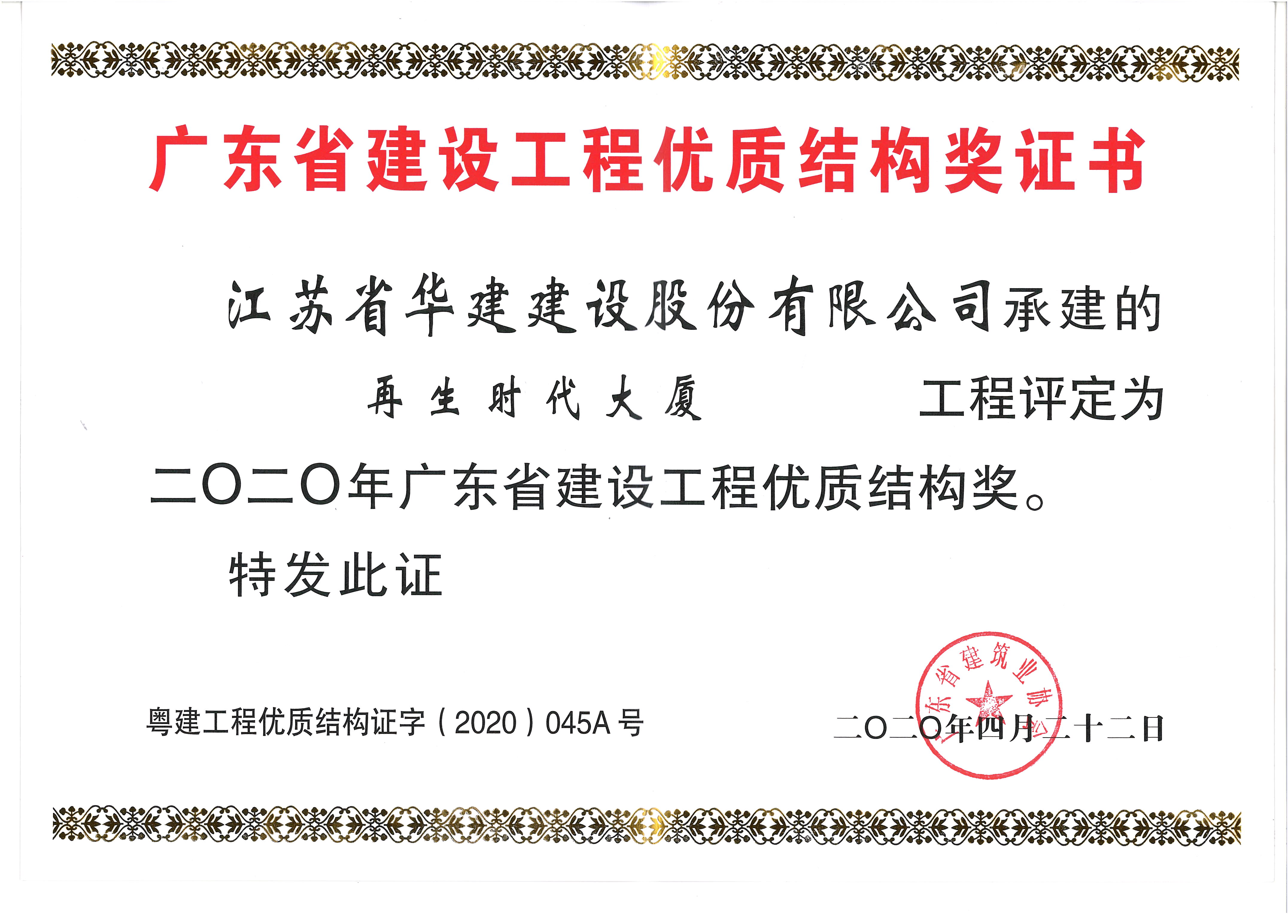 再生時代大廈獲2020年廣東省建設工程優質結構獎