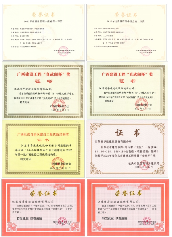 2022年度,北京分公司技術成果和質量創(chuàng)優(yōu)表現(xiàn)非常突出。截至目前,技術成果方面共獲得七項國家獎項和八項省級獎勵,質量創(chuàng)優(yōu)方面,共獲得兩項省級優(yōu)質工程、兩項省級優(yōu)質結構和市優(yōu)質工程三項。具體而言,BIM成果共獲兩項國家獎項,QC成果獲一項國家獎項及七項省級獎項,申請專利獲得四項國家實用新型專利授權,新技術應用示范工程獲一項省級獎項,項目工程方面綠城楊柳郡柳園1#-4#及地下室工程和綠城楊柳郡柳園5#-7#及地下室工程分獲廣西建設工程“真武閣杯”獎(最高質量獎),中海天鉆11#-14#及地下室工程和楊柳郡華園1-7#樓及地下室分獲廣西建設工程優(yōu)質結構獎,中海天鉆3#、5#、6#樓及地下室和中海天鉆2#、7#、8#樓及地下室分獲柳州市建設工程“龍城杯獎”,中海河山郡(北區(qū))一標段5#、6#、9#-11#、16#-19#住宅樓獲包頭市建設工程質量“金鹿杯”獎。