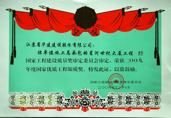 星河世紀大廈 時間:2010-01-19 8119 該工程位于深圳市福田區深南大道南與彩田路西交匯處,是深圳市中心區東門標志性建筑。該工程一裙三塔,32-39層,高173.2米,總建筑面積156680平方米,是集辦公、商業、住宅為一體的綜合樓。 該工程先后榮獲2006年度“深圳市安全生產文明施工優良工地”、2007年度深圳市優質工程“金牛獎”第一名、2007年度廣東省優良樣板工程獎、2007年度江蘇省“揚子杯”省外優質工程獎,2009年12月被評為2009年度國家優質工程銀質獎。