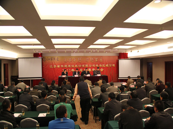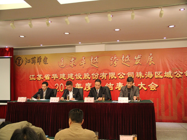 15下午,珠海區域公司在珠海凱迪克酒店召開了2011年度總結表彰大會。珠海、陽江、中山公司機關全體人員、各工程處主任、各項目經理、受表彰的先進代表共90余人參加了會議。會議由珠海區域公司副總經理、陽江分公司總經理盧達主持,江蘇華建副總經理、珠海區域公司總經理繆國樞同志作了工作報告;珠海區域公司副總經理、中山分公司副總經理嚴正濤同志布置了制定珠海區域公司近五年發展規劃工作;珠海公司總工程師、副總經理周學軍同志宣讀了表彰決定。