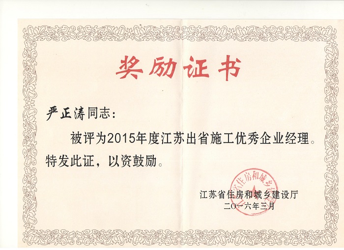 重慶分公司被表彰為“2015年度江蘇出省施工先進企業” 時間:2016-04-20 3238 近日,重慶分公司被江蘇省住房和城鄉建設廳表彰為“2015年度江蘇出省施工先進企業”,重慶分公司總經理嚴正濤榮獲“2015年度江蘇出省施工優秀企業經理”稱號,樊晨亮被評為“2015年度出省施工優秀黨務工作者”。