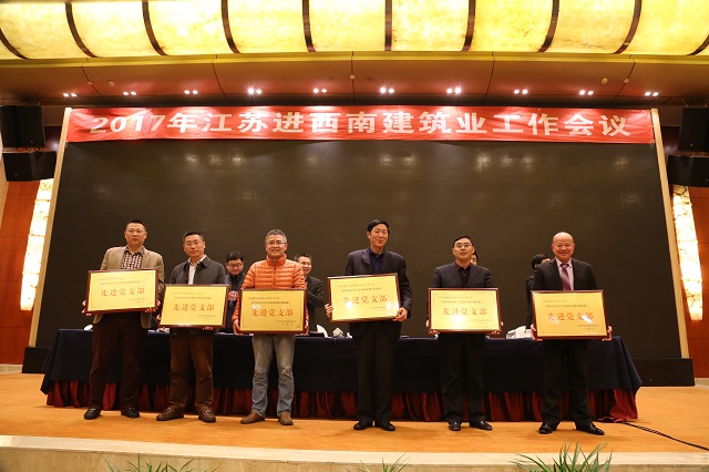 在江蘇商會組織召開江蘇出省建筑業(yè)企業(yè)西南地區(qū)黨委會會議。江蘇省建筑工程管理局副局長陳晨、江蘇省住建廳建筑市場監(jiān)管處處長范信芳、江蘇省住建廳質(zhì)監(jiān)站站長曹春光、重慶市住建委建管處處長夏太風(fēng)、重慶市住建委行政審批中心主任吳廣等參加會議。會上,重慶分公司黨支部被江蘇省住建廳表彰為“2016年度江蘇進西南地區(qū)建筑施工先進黨支部”,田大浪、杜國圣同志被評為“2016年度江蘇出省施工優(yōu)秀黨務(wù)工作者”。